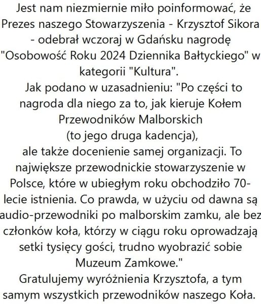 Krzysztof Sikora osobowością roku 2024 w kategorii kultura
